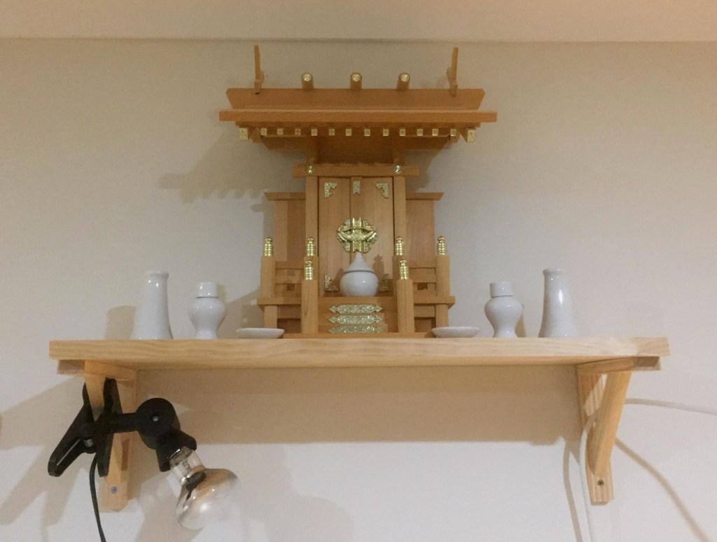 There’s a kamidana (miniature Shinto shrine) on the wall, along with several oshigata (sword drawings) by Nagayama Koukan.