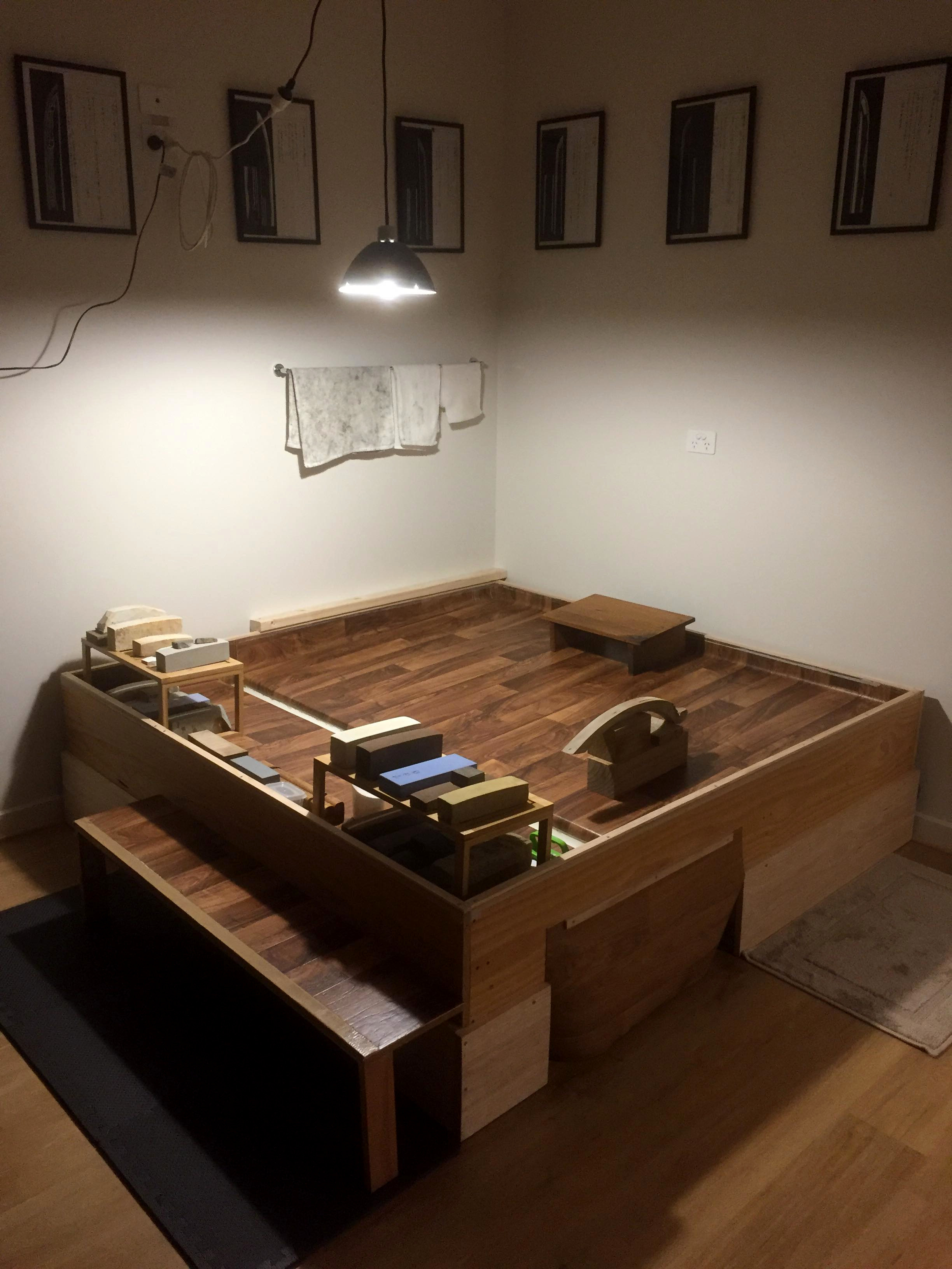 My togiba (polishing workshop) is my Japanese home away from Japan. It’s setup with two togibune (polishing platforms), one for shitaji (foundation polish), and one for shiage (finishing polish).